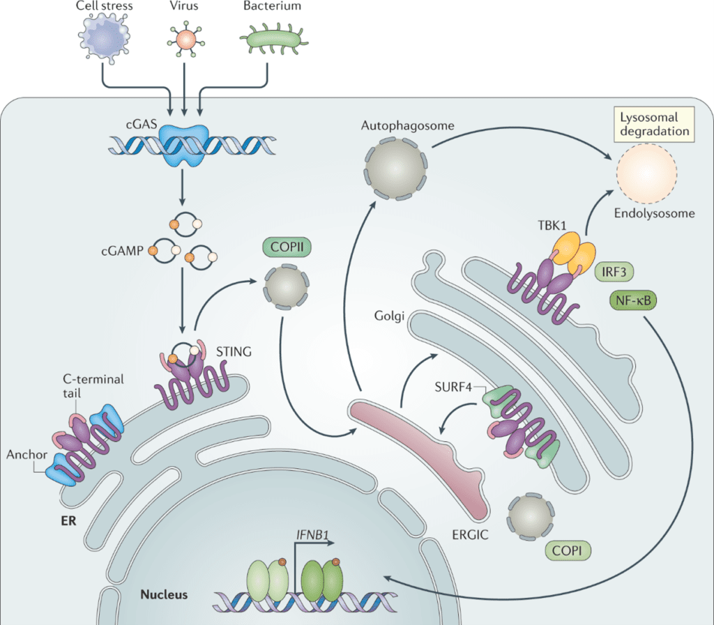 Figure 1. The cGAS/STING pathway, from Decout et al. Nat Rev Immunol 21, 548–569 (2021).